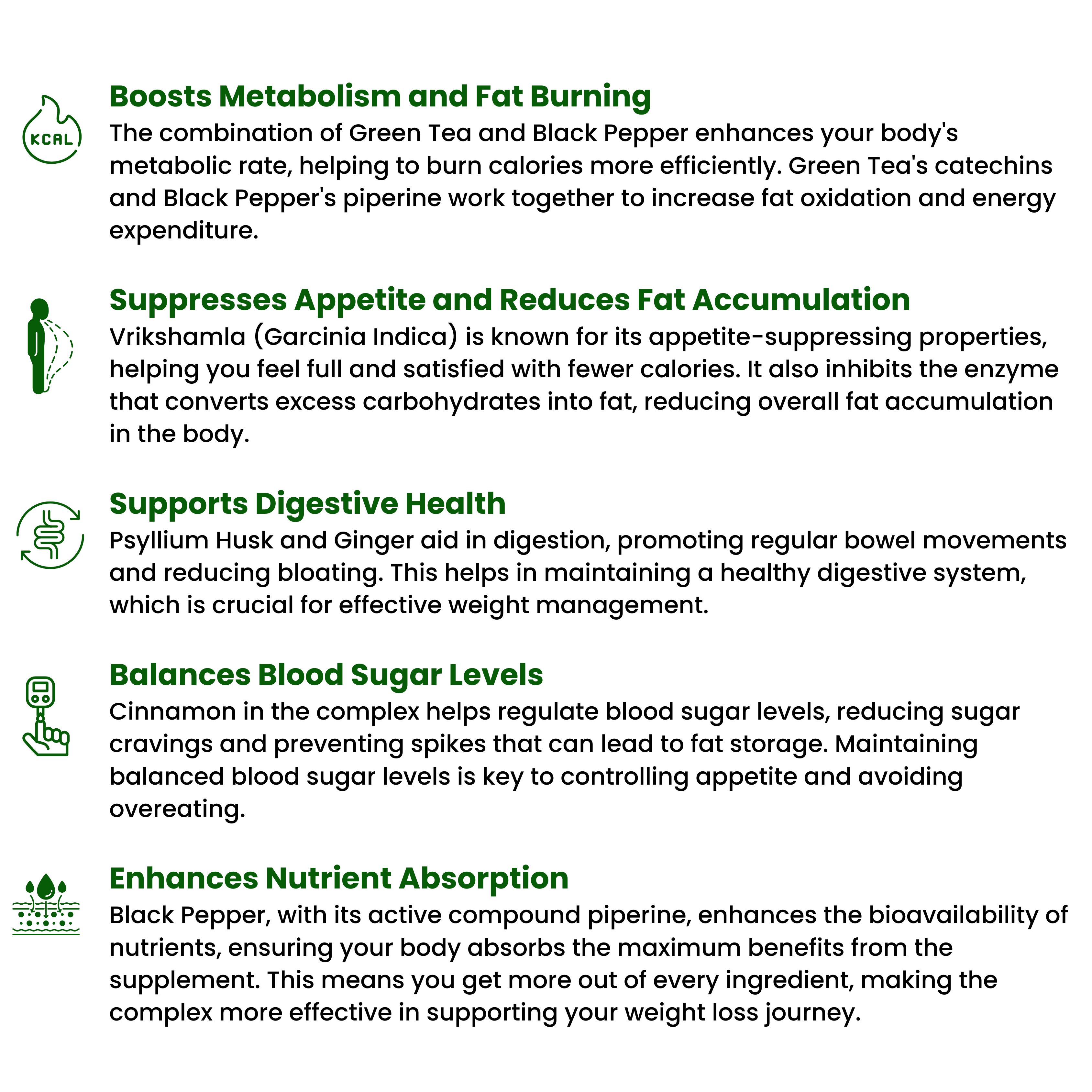 - Kokkam Extract (Garcinia Cambogia Fruit): Known for suppressing appetite and reducing fat storage.