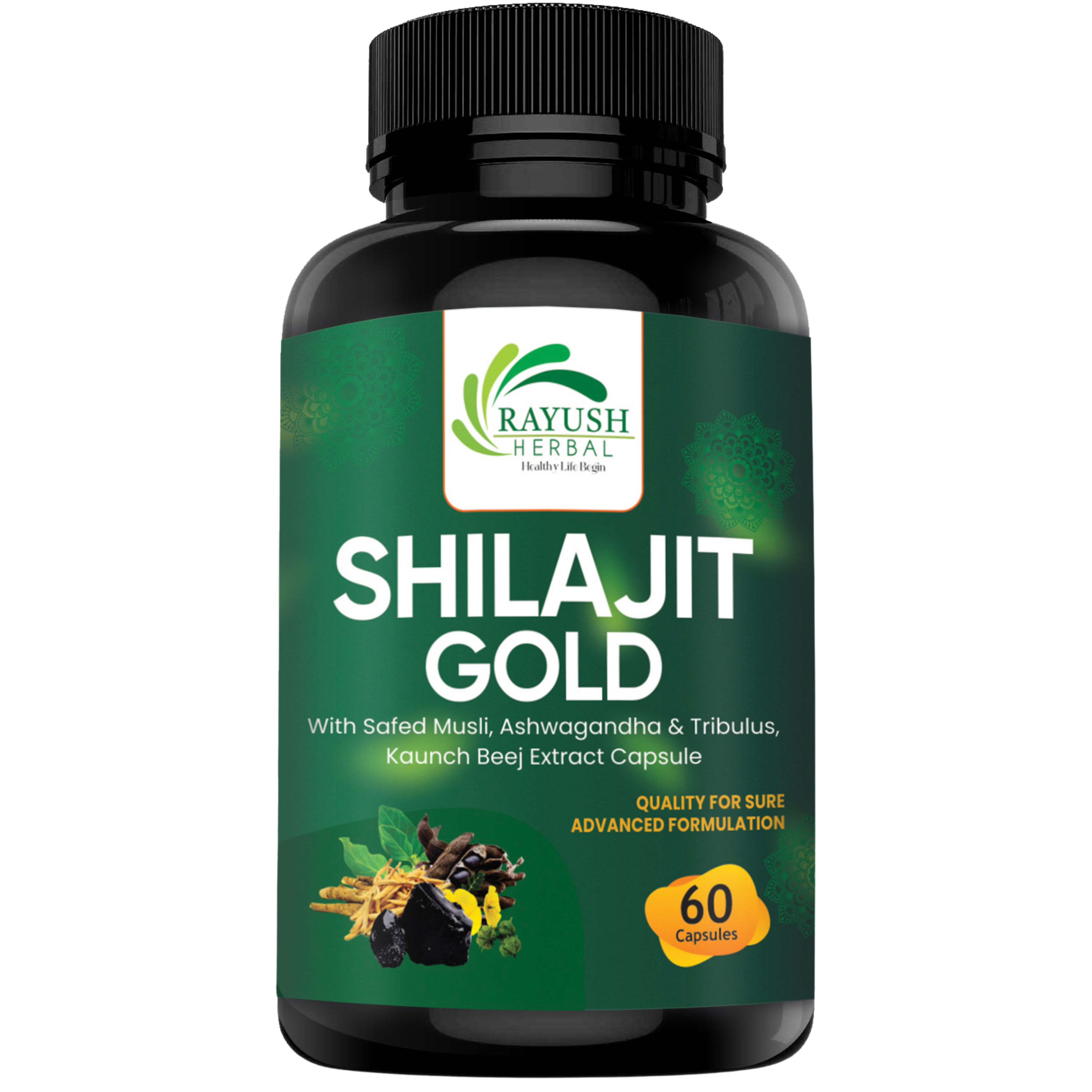Rayush Herbal Shilajit Gold Capsules with Safed Musli | Enhance Power & Stamina | Build Muscle Mass | 60 Capsules